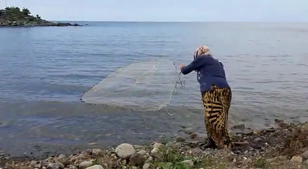 Rize’nin Ardeşen İlçesi’ne bağlı Işıklı Köyü sahilinde yerel halk saçma ile balık tutuyor. Kıyıda dolaşan kefalleri saçma ile avlayan halk hem balık tutmanın keyfini hem tutulan balığın tadını çıkartıyor.79 yaşındaki Fatma Yakıcı da oğlu Sait Yakıcı ile birlikte deniz kenarında saçma ile balık tutmanın tadını çıkartıyor. Sessiz sessiz suya yaklaşarak pusuya yatan Fatma Teyze, fırsatını bulduğunda kilolarca ağırlıktaki saçmasını atıyor ve tuttuğu balıkların tadını çıkartıyor. Oğlu Sait Yakıcı tarafından sosyal medya hesabından paylaşılan Fatma Teyze’nin saçma attığı ve balık tuttuğu görüntüler ise anne Yakıcı’ya hayran bıraktırıyor.