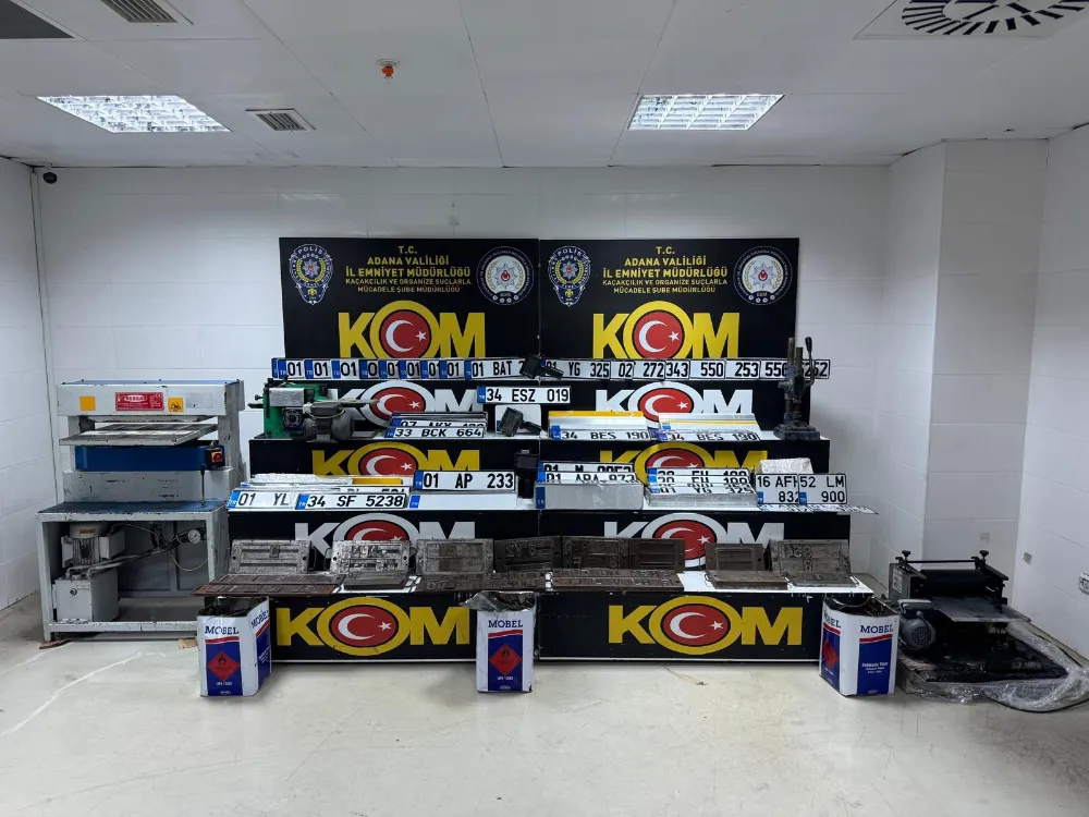 Adana Emniyet Müdürlüğü Kaçakçılık ve Organize Suçlarla Mücadele (KOM) Şube Müdürlüğü bağlı Mali Büro ekipleri, "resmi belgede sahtecilik" suçu kapsamında ‘APP' plaka olarak bilinen sahte plaka basan 3 atölyeyi teknik ve fiziki takip sonucu deşifre etti. Toplanan delillerinin ardından söz konusu 3 atölyeye eş zamanlı baskın yapıldı.
