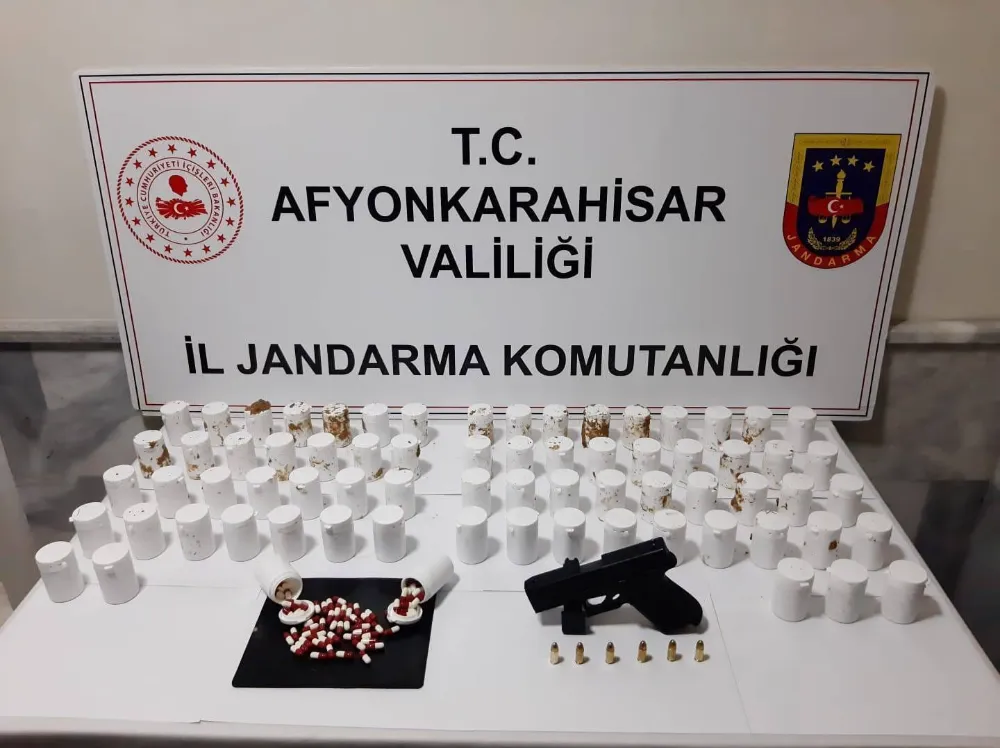 Afyonkarahisar’da jandarma ekiplerinin düzenlediği operasyonda 3 bin 692 adet uyuşturucu hap ile ruhsatsız tabanca ele geçirildi. Gözaltına alınan şüpheli, çıkarıldığı mahkemece tutuklanarak cezaevine gönderildi.