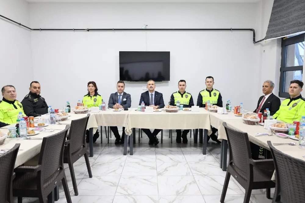 Ağrı Valisi Önder Bozkurt, İl Emniyet Müdürü Göksel Önder ile birlikte Bölge Trafik Denetleme Şube Müdürlüğü’nde görev yapan trafik polisleriyle iftar yaptı.