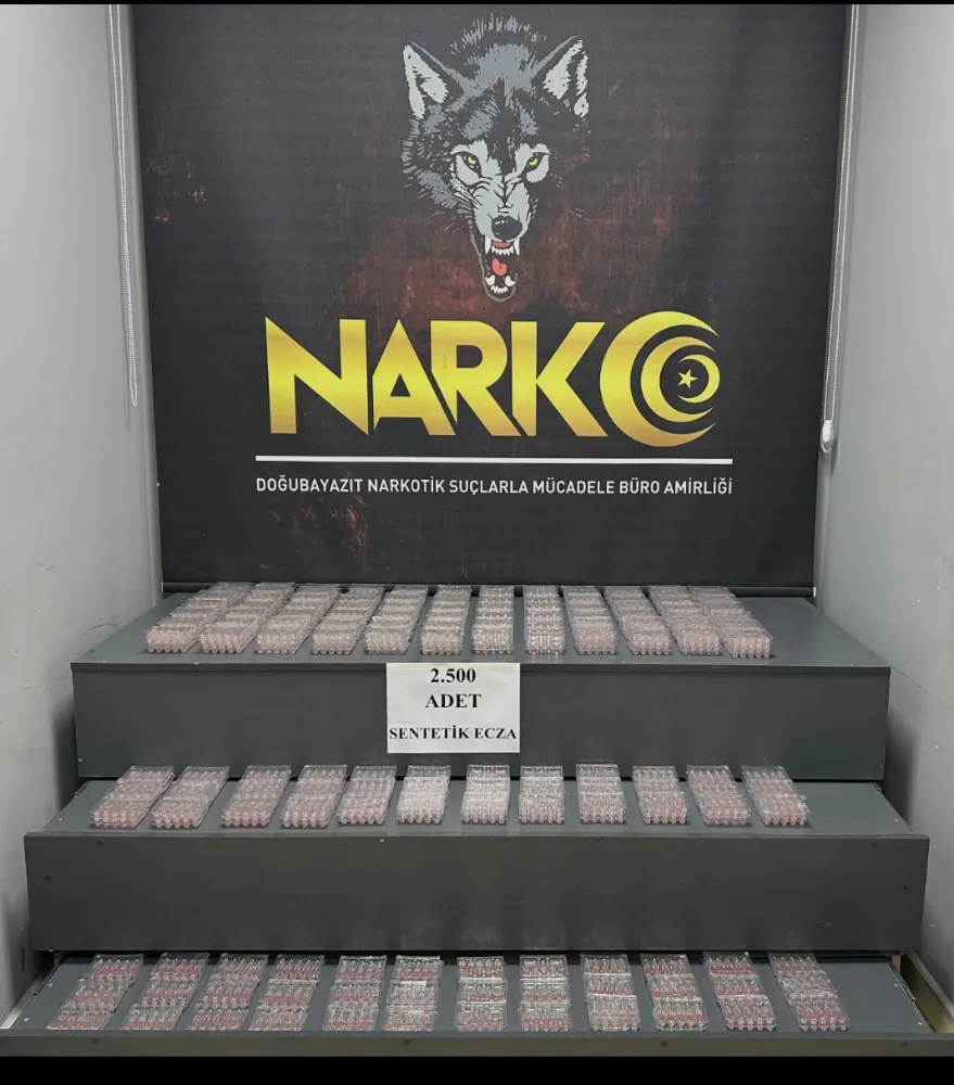 Ağrı İl Emniyet Müdürlüğü ekiplerince yürütülen çalışmalar kapsamında Doğubayazıt ilçesinde yabancı uyruklu bir şahsın kullandığı tır ve dorsesinde arama yapıldı. Yapılan aramalarda toplam 2 bin 500 adet sentetik ecza maddesi ele geçirildi.