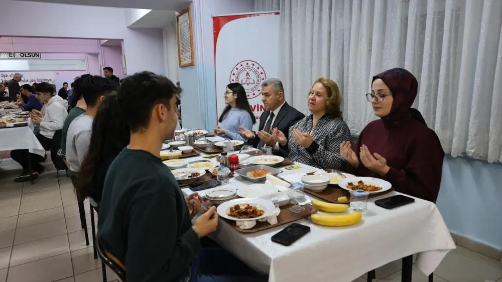 Artvin Valisi Turan Ergün ve eşi Hülya Ergün, Ramazan ayının manevi atmosferinde lise öğrencileriyle iftar sofrasını paylaştı. Yeni Mahalle 15 Temmuz Şehitleri Anadolu Lisesi pansiyonunda gerçekleşen programda öğrencilerle bir araya gelen Vali Ergün, gençlerin eğitim hayatları ve gelecek hedefleri üzerine sohbet etti.