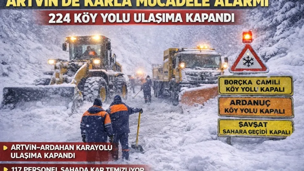 Artvin’de günlerdir etkisini sürdüren yoğun kar yağışı ve olumsuz hava koşulları nedeniyle karla mücadele çalışmaları aralıksız devam ediyor. AFAD koordinesinde yürütülen çalışmalar kapsamında, 16 Ocak 2026 Cuma günü saat 11.00 itibarıyla il genelinde 323 köyden 224’ünün yolu ulaşıma kapalı durumda.