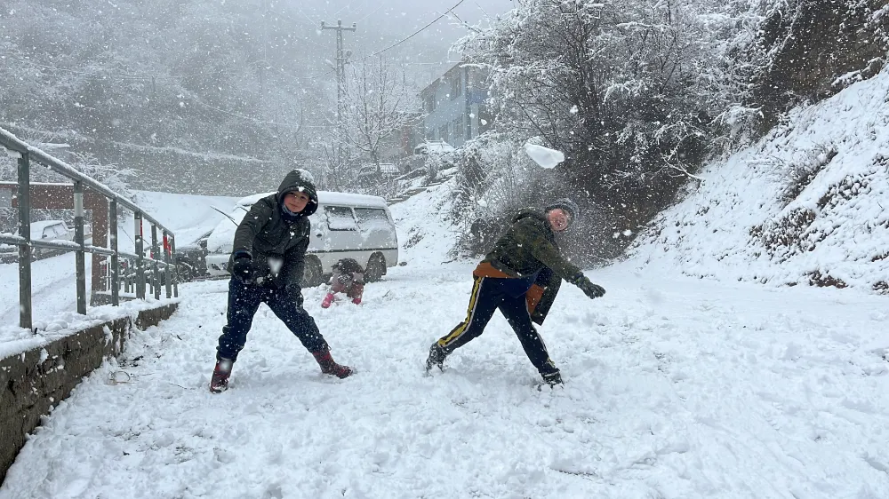 Öte yandan kar yağışı çocukların yüzünü güldürdü. Mahalle aralarında kar topu oynayan çocuklar beyaz örtünün keyfini çıkarttılar.