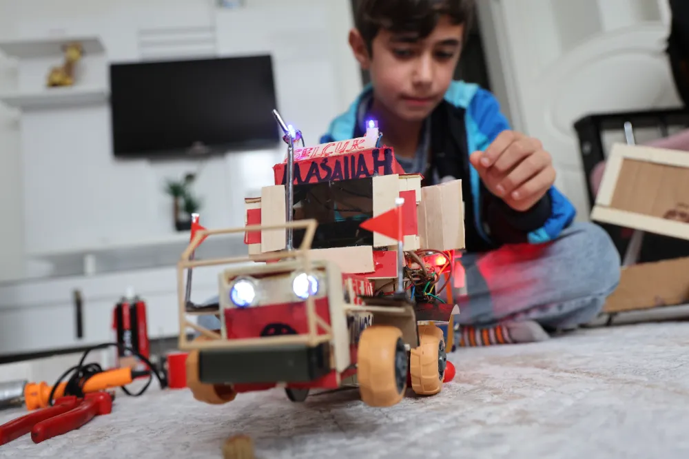 Elazığ'da yaşayan 12 yaşındaki Selçuk Çiçekçi, atık malzemeler ve kendi imkanlarıyla yaptığı traktör maketiyle dikkat çekti. Selçuk Bayraktar'ı örnek alan Selçuk, en büyük hayalinin onun gibi üretmek olduğunu söyledi.