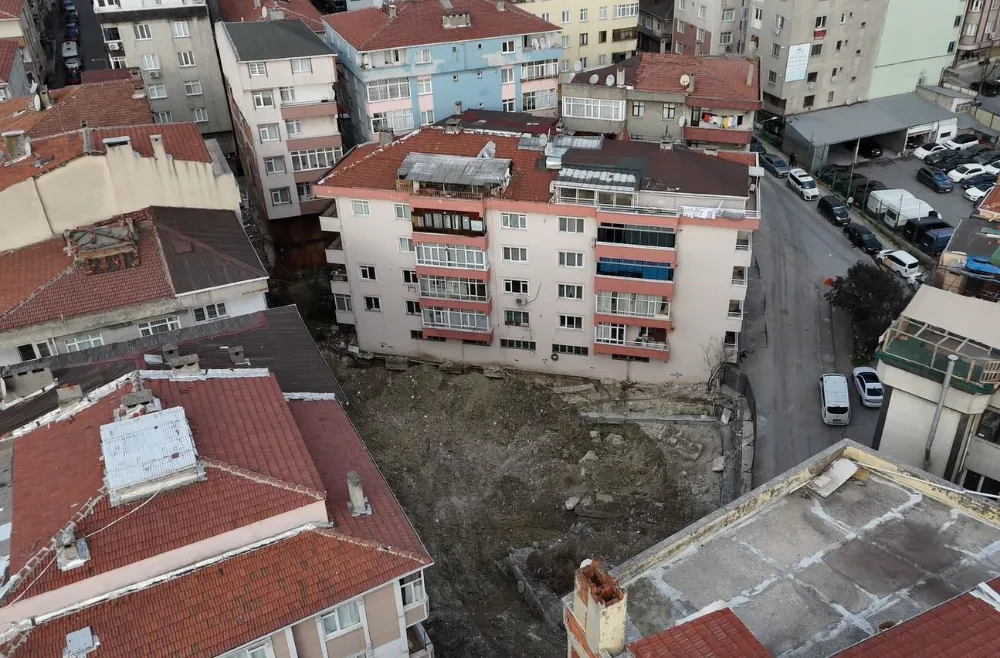 5 katlı bina, sabahın ilk ışıklarıyla birlikte havadan görüntülendi. Çekilen dron görüntülerinde, tahliye edilen binanın altındaki toprak kaymasını ve temel ile zemin arasındaki açıklık net bir şekilde kaydetti.