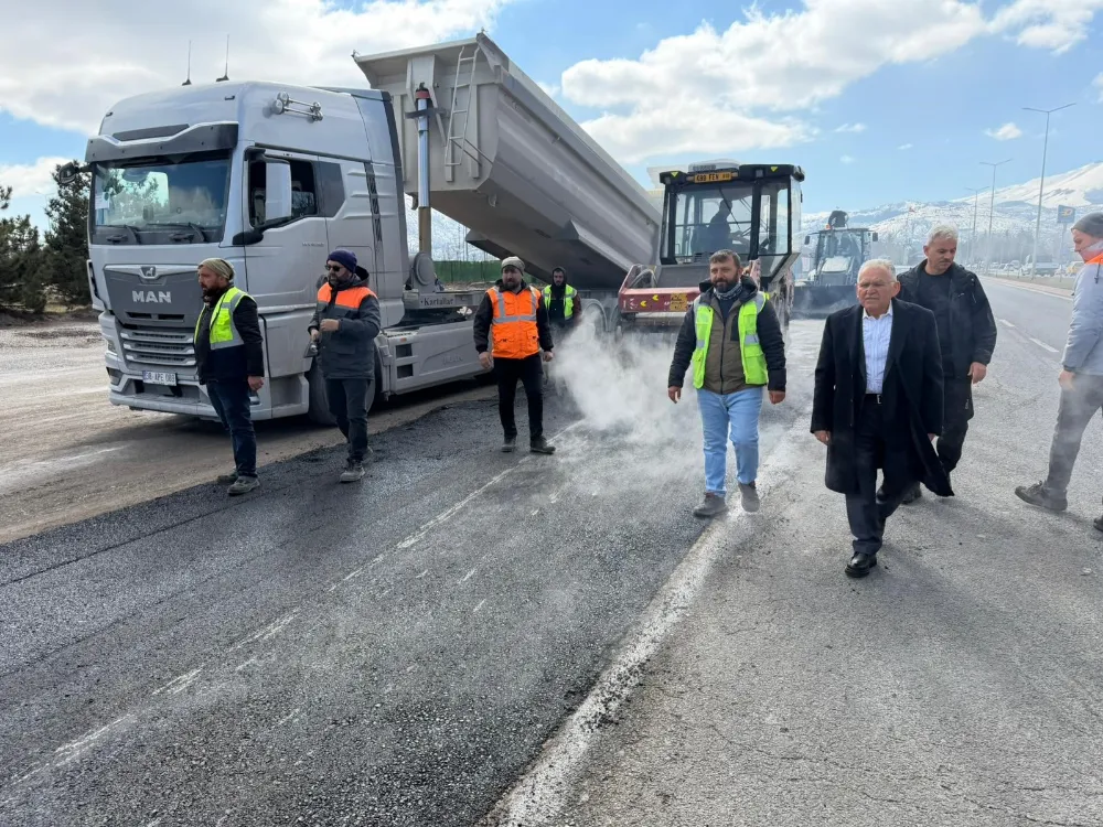 Mehmet Özhaseki Bulvarı üzerinde, Recep Tayyip Erdoğan Millet Bahçesi önünde gerçekleştirilen asfalt yenileme çalışmalarını sahada denetleyen Büyükkılıç, yol konforunu ve ulaşım güvenliğini arttırmaya yönelik çalışmaların hızla sürdüğünü ifade etti.
