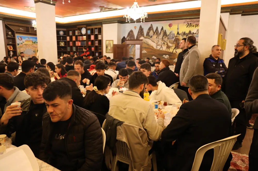 Nevşehir Belediyesi makam odasında düzenlenen sahur programına yaklaşık 250 genç katıldı. Yoğun ilgi nedeniyle gençler zaman zaman makam odasına sığmazken, sahur programı samimi ve renkli görüntülere sahne oldu.