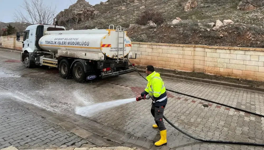 Bayburt’ta Bahar Temizliği Başladı: Belediye Ekipleri Sokakları Yıkıyor