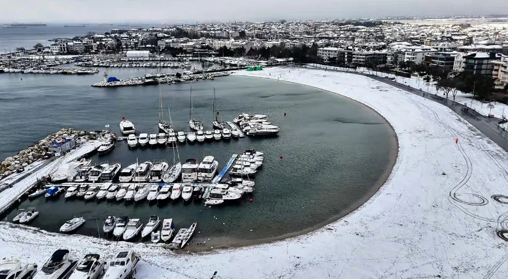 İstanbul'da dün başlayan ve gece saatlerinde etkisini artıran kar yağışı sonrası birçok nokta beyaza bürünürken, Bakırköy'de bulunan Yeşilköy sahili de beyaz örtüyle kaplandı. Sahile gelen vatandaşlardan bazıları yürüyüş yaparken, kimi de kartopu oynadı. Sahilin mest eden karlı manzarası havadan görüntülendi.