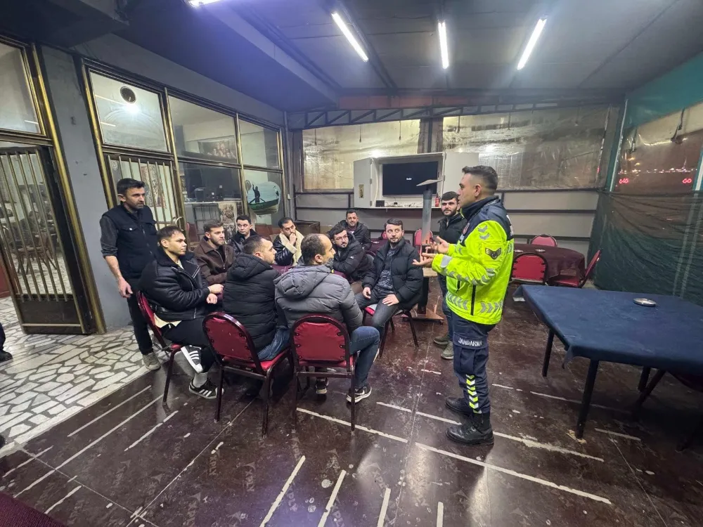 Vezirhan beldesinde dün gece faaliyet gösteren bir kıraathane de 18 vatandaşa 1'inci Jandarma Motosikletli Trafik Tim Komutanlığı ekiplerince eğitim verildi. Faaliyette genel trafik kuralları ve Resmi Gazete'de yayımlanan güncel trafik cezaları detaylı şekilde aktarıldı. Eğitim sırasında sürücü ve yayaların uyması gereken kurallar, hız limitleri, emniyet kemeri ve kask kullanımı gibi konular anlatılırken, katılımcılar trafik güvenliği konusunda bilinçlendirildi. Vatandaşların soruları da cevaplanarak uygulamalı bilgilendirme yapıldı.