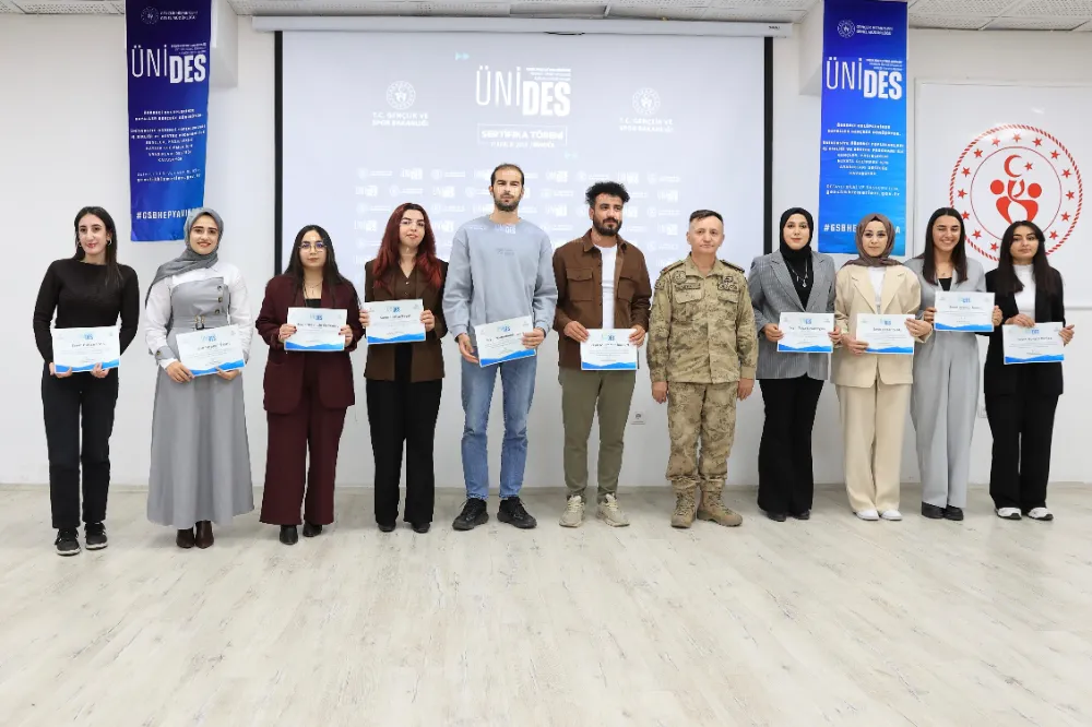 Bingöl’de, Gençlik ve Spor Bakanlığı Gençlik Hizmetleri Genel Müdürlüğü tarafından yürütülen Üniversite Öğrenci Toplulukları İş Birliği ve Destek Programı (UNİDES) kapsamında hayata geçirilen projelerde yer alan üniversite öğrencileri için sertifika töreni düzenlendi. Bingöl Gençlik ve Spor İl Müdürlüğü koordinasyonunda gerçekleştirilen törende, üniversite öğrenci topluluklarının aktif katkıları, akademisyenlerin rehberliği ve proje koordinatörlerinin özverisiyle yürütülen çalışmalarda görev alan öğrencilere sertifikaları takdim edildi. Törende sertifikalar; Bingöl Valisi Dr. Ahmet Hamdi Usta, Bingöl Belediye Başkanı Erdal Arıkan, İl Jandarma Komutanı Tuğgeneral Sabri Küyük ve kurum amirleri tarafından verildi.