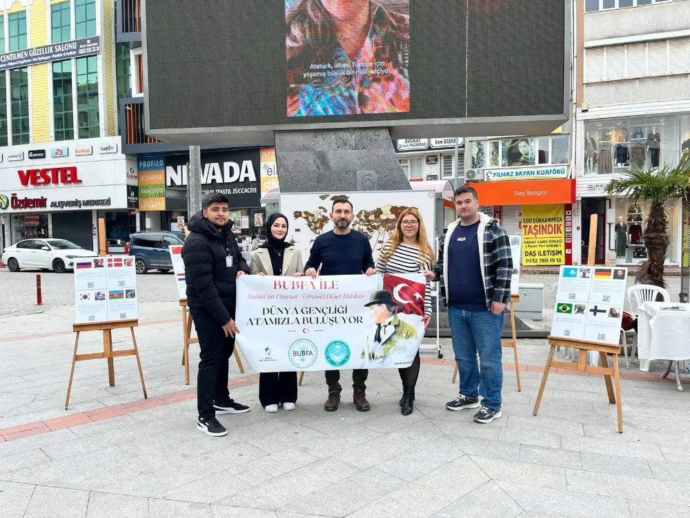 Proje kapsamında, farklı ülkelerden yabancı uyruklu bireylerle gerçekleştirilen video röportaj çalışmaları aracılığıyla Atatürk’ün dünya insanları üzerindeki etkisi kayıt altına alındı. Röportajlara katılan yabancı katılımcılar, Atatürk’ü barışçıl liderliği, çağdaşlaşma anlayışı ve evrensel değerlere olan bağlılığı çerçevesinde değerlendirdiklerini ifade etti. Hazırlanan video içerikleri, proje sunumlarında ve sergi alanında izleyicilerle buluşturuldu. Çalışmaların önemli bir çıktısı olarak hazırlanan "Evrensel Değer Haritası", Atatürk’ün fikirlerinin küresel ölçekte nasıl algılandığını ortaya koyan özgün bir çalışma niteliği taşıdı. Harita üzerinde farklı ülkelerden bireylerin Atatürk hakkındaki görüşlerine yer verilerek, Atatürk’ün düşüncelerinin sınırları aşan evrensel bir miras olduğu vurgulandı. Proje kapsamında hazırlanan değer haritası ve video çalışmaları, Burhaniye merkezde kurulan sergi alanında halkın ziyaretine sunuldu. Ayrıca proje kapsamında hazırlanan video röportajlar, Burhaniye meydanında yer alan billboard ekranlarında da yayınlanarak geniş kitlelere ulaştırıldı. Sergi ile Atatürk’ün düşüncelerinin yalnızca akademik çevrelerde değil, toplumun her kesiminde anlaşılması ve özellikle dünya gençliğiyle buluşturulması hedeflendi. Sergiye Burhaniye Uygulamalı Bilimler Fakültesi Dekanı Prof. Dr. Mehmet Oğuzhan İlban da katılım sağladı. Etkinlik, Burhaniye halkının yoğun ilgisiyle karşılandı ve ziyaretçilerden olumlu geri dönüşler aldı. Proje, Burhaniye Uygulamalı Bilimler Fakültesi Dekanı Prof. Dr. Mehmet Oğuzhan İlban danışmanlığında, Fakülte Uluslararası Ticaret Bölümü 3. sınıf öğrencileri Nursena Demirbaş, Saliha Mutlu, Fatma Yılmaz, Emir Gür, İbrahim Ulaş Vardarbaşı ve Ali Ensar Bağdatlı tarafından yürütüldü.