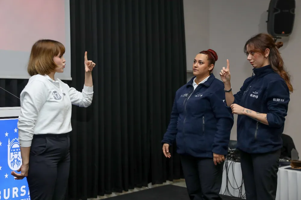 Bursa’da kamusal hizmetlerdeki erişilebilirliği artırmak ve daha nitelikli hizmet sunabilmek amacıyla çalışmalarını sürdüren Bursa Büyükşehir Belediyesi, BURFAŞ sosyal tesisleri ve B Kafelerde görev yapan personele yönelik işaret dili ve etkili iletişim eğitimi düzenlendi. İnsan Kaynakları ve Eğitim Dairesi Başkanlığı Personel Geliştirme Şube Müdürlüğü koordinasyonunda 3 hafta boyunca Atatürk Kültür Merkezi Merinos Yerleşkesi’nde gerçekleştirilen programa, toplam 240 personel katıldı.
