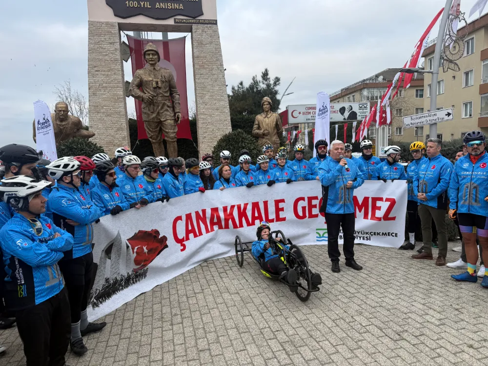 İstanbul Büyükçekmece’de, aralarında paralimpik 5 sporcunun da olduğu 50 bisikletçi, Çanakkale Zaferi’nin 111’inci yıl dönümü için bu yıl 12’inci kez, Büyükçekmece’de Çanakkale’ye pedal çevirdi.
