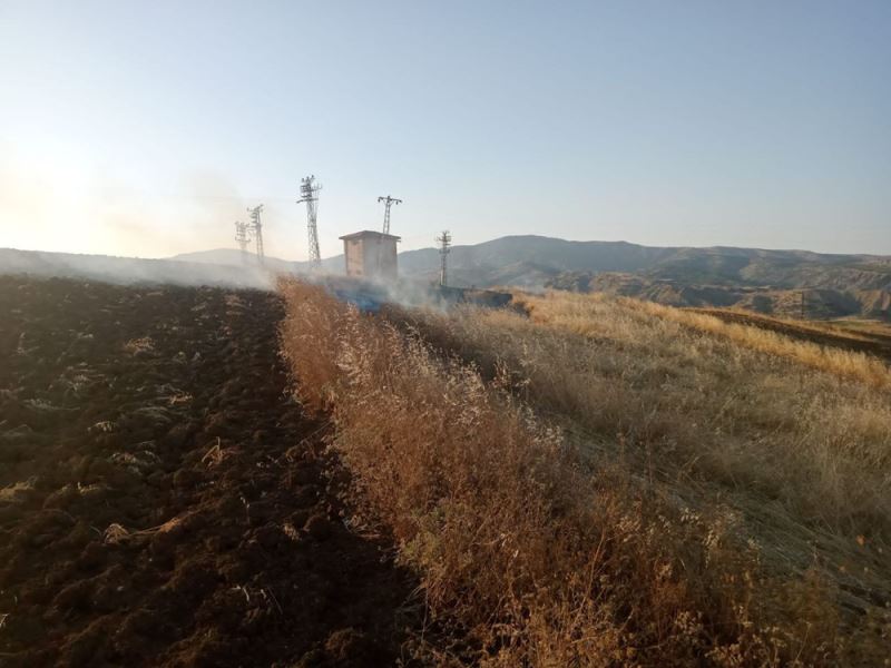 Bölgedeki elektrik trafosundan sıçrayan kıvılcımdan kaynaklandığı tahmin edilen yangın nedeniyle yaklaşık 10 dönüm anız yandı.