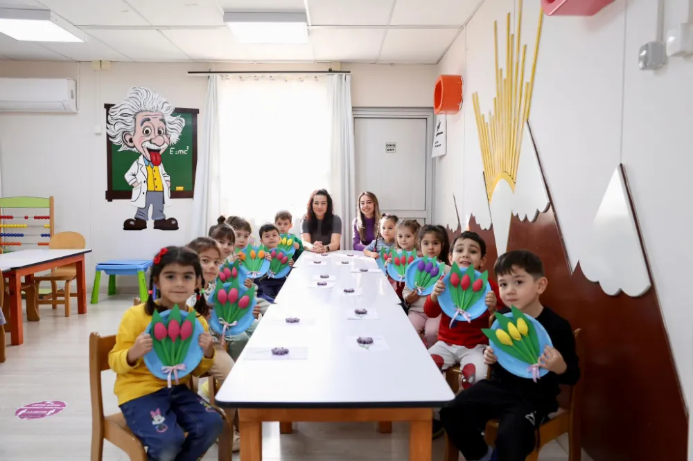 Didim'de belediye kreşinde eğitim gören minik öğrenciler, 8 Mart Dünya Emekçi Kadınlar Günü dolayısıyla öğretmenleri eşliğinde hazırladıkları renkli çalışmalarla annelerine ve tüm kadınlara mesaj verdi.