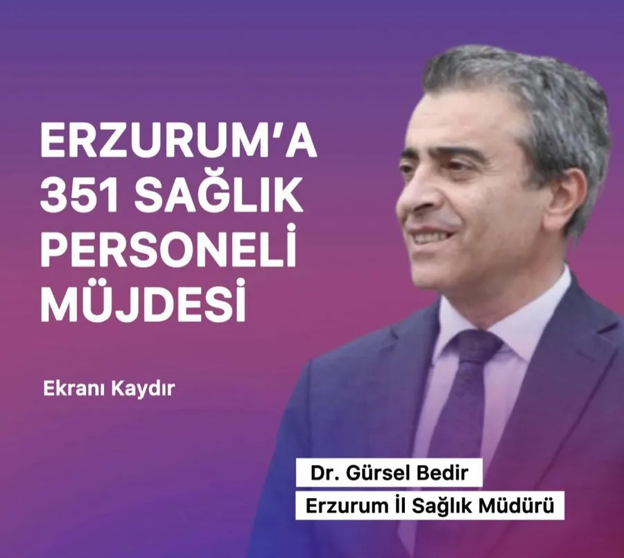 Erzurum İl Sağlık Müdürü Gürsel Bedir, Türkiye genelinde Sağlık Bakanlığı tarafından yürütülen sağlık personeli alımlarına ilişkin önemli açıklamalarda bulundu. Bedir, “Bakanlığın ülke genelinde tamamen KPSS puan sıralamasına göre gerçekleştireceği 15.247 sağlık personeli alımı için ÖSYM üzerinden başvurular başlamış olup, başvurular 6 Ekim tarihine kadar devam edecektir.” ifadelerini kullandı.