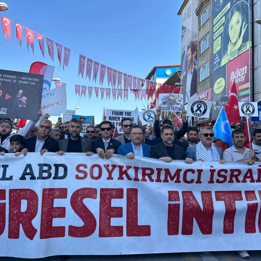 Yürüyüşte konuşan AK Parti Erzurum İl Başkanı Av. İbrahim Küçükoğlu, mazlum Filistin halkının yanında olduklarını ifade ederek, “Bugün Erzurum’da zulme karşı tekbirlerle, dualarla ve kardeşlik ruhuyla tek yürek olduk. Sessiz kalmadık, kalmayacağız. Adaletin, özgürlüğün ve insanlığın yanında olmaya devam edeceğiz” dedi.