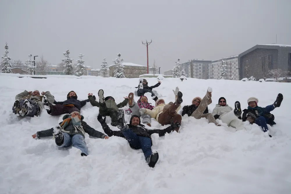 Anadolu turuna Van'dan başlayan Belçikalı turistler, yolculuklarının Erzurum durağında kışın ve karın keyfini doya doya yaşadı. Kartopu savaşı yapan turistler, yokuşta kalan araca da el atarak saplandığı yerden kurtardılar.