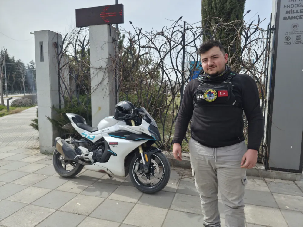 Motosikletli kurye Çetin Can, polisin “Kaçarsanız yakalarım” uyarısına, motosikletinin değerine atıf yaparak esprili yanıt verdi; kask kamerasına yansıyan diyalog sosyal medyada gündem oldu.