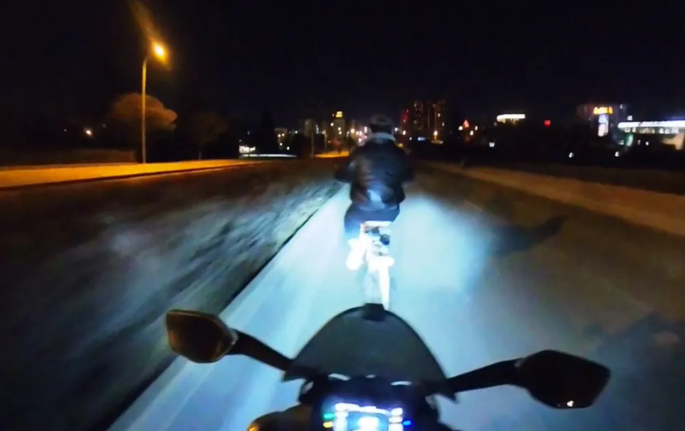 Geçtiğimiz günlerde Tepebaşı ilçesi Uluönder Mahallesi İsmet İnönü 2 Caddesi üzerinde, trafikte yeşil ışığın yanması ile birlikte Can Türk isimli motosiklet sürücüsü ilerlemeye başladı. Can Türk, yolun yokuş aşağı kısmına geldiğinde son anda fark ettiği ve caddenin ortasında seyreden bisikletli vatandaşı gördüğünde, kaza yapacağı endişesine kapıldı.