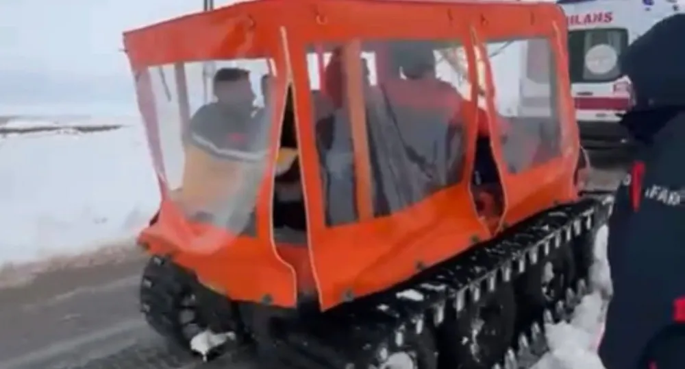 Gaziantep’te Düşük Riski Olan Hamile Kadın Karla Kaplı Yolda Paletli Araçla Kurtarıldı