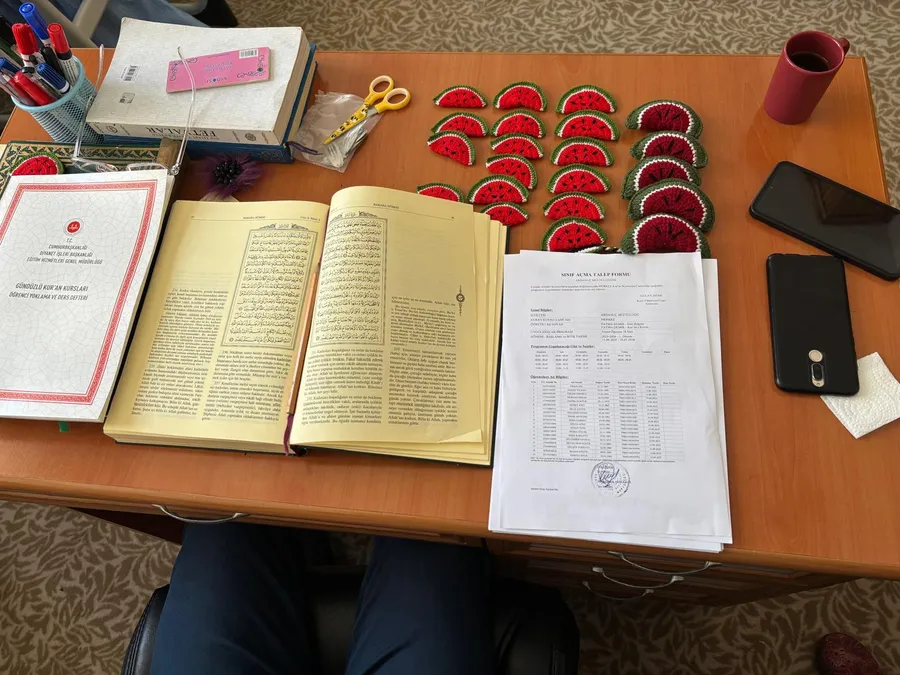 Kur’an kursu öğreticilerinden yürütülen eğitim faaliyetleri hakkında bilgi alan İlçe Müftüsü, öğrencilerin eğitim sürecini yakından takip etti. Öğrenciler, ziyaret sırasında kendi el emeğiyle hazırladıkları örgü anahtarlıklarla Gazze’de yaşanan soykırım ve Müslümanlara yapılan zulümlere dikkat çekti. Bu anlamlı etkinlik, öğrencilerin sosyal sorumluluk bilincini geliştirmeleri açısından büyük önem taşıdı.