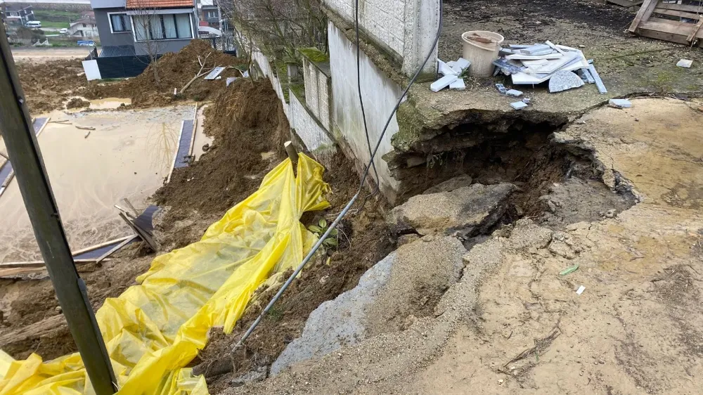 Tüysüzler Mahallesi Esra Sokak üzerindeki inşaat şantiyesinde, zeminin yağışlar nedeniyle yumuşaması sonucu istinat noktasında çökme meydana geldi. Olayda, yolun inşaat alanına bakan kısmı koparak aşağı kaydı. Çökmenin etkisiyle inşaat alanındaki ahşap kalıplar ve bazı malzemeler çukura sürüklenirken, bir apartmana ait otopark alanı hasar gördü ve bahçe duvarı yıkıldı. Yer altından geçen şebeke suyu ve diğer altyapı hatları da zarar gördü.