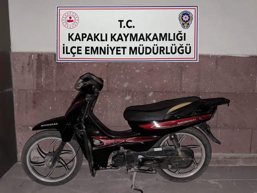 Kapaklı İlçe Emniyet Müdürlüğü ekiplerince yapılan çalışmalarda çalınan bir motosiklet bulundu.