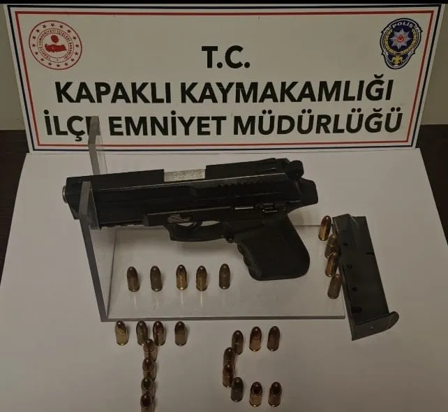 Kapaklı İlçe Emniyet Müdürlüğü ekiplerince ruhsatsız silahlanmaya yönelik yapılan saha çalışmalarında M.Ç. ve M.Y. isimli şüphelilerin üzerinde 2 adet ruhsatsız tabanca ve 25 adet fişek ele geçirildi.Şahıslar hakkında işlem başlatıldı.