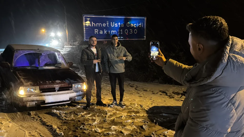 Kar yağışını fırsat bilen vatandaşlar, bin 30 rakımlı Ahmetusta Geçidi’ne akın etti. Bölgeye gelenler ateş yakarak ısınırken, bol bol fotoğraf çektirip karın keyfini çıkardı.