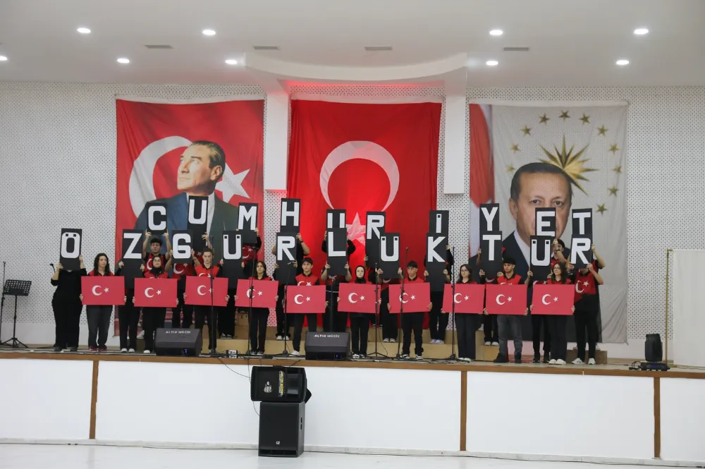 Program kapsamında öğrenciler tarafından şiirler okundu; ritim, tiyatro, oratoryo, folklor ve müzik gösterileri sahnelendi. Cumhuriyet’in ışığını ve değerlerini yansıtan bu gösteriler izleyicilerden büyük alkış aldı.