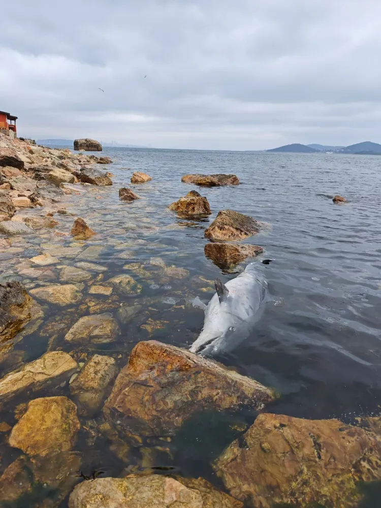 Kınalıada sahilinde bir yunus kıyıya vurdu; belediye ekipleri tarafından kaldırıldı.