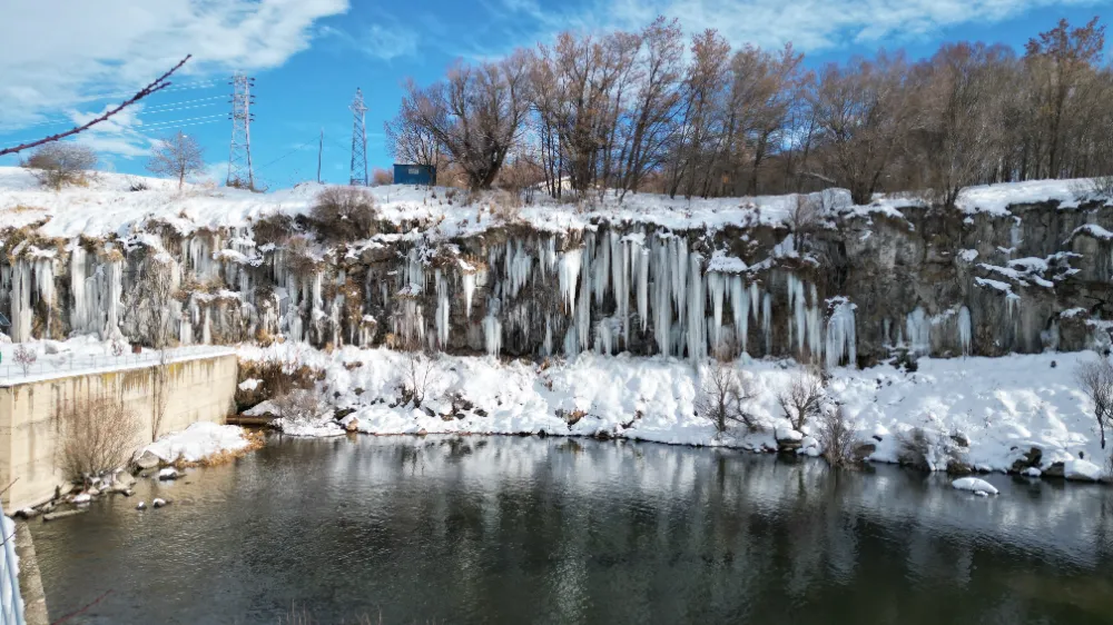 Van’ın Erciş ilçesinde kar ve don olayıyla oluşan 30-35 metre boyundaki buz sarkıtları, doğa tutkunları ve fotoğrafçıların ilgisini çekiyor.