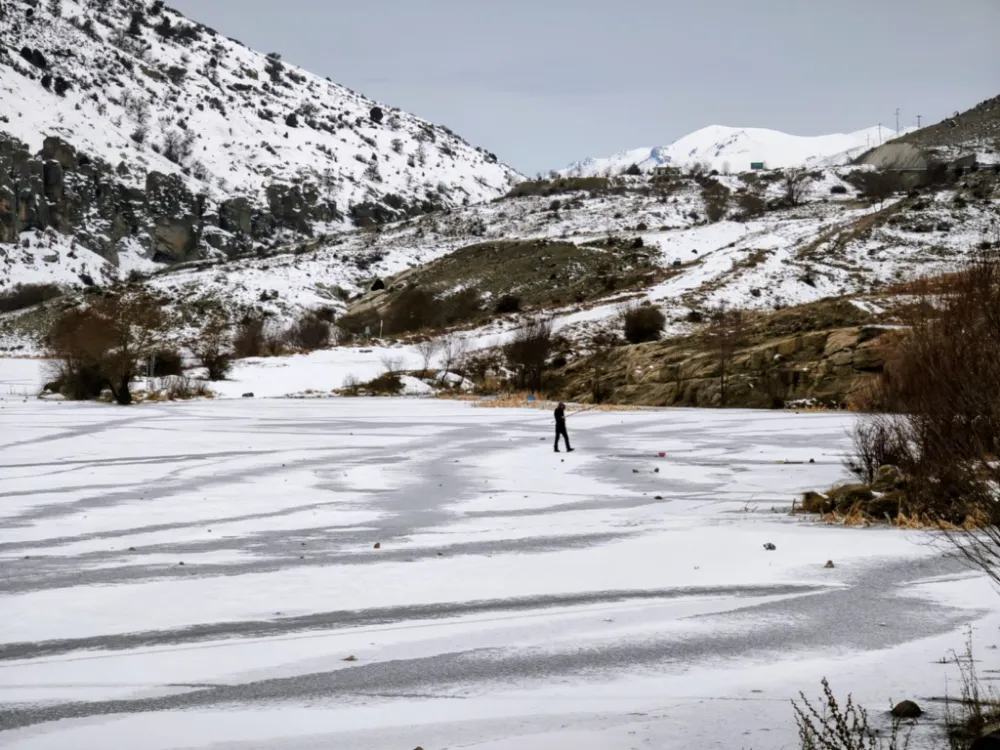 Konya-Antalya kara yolu üzerindeki Bulumya Göleti, aşırı soğuklar nedeniyle tamamen dondu. Karla kaplı dağlar ve çam ormanlarıyla çevrili gölette bazı vatandaşlar buz kırarak balık tuttu, göl üzerinde yürüyüş yaptı.