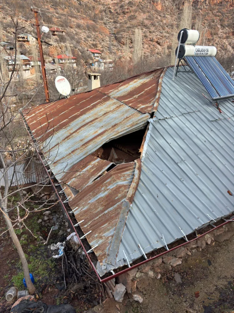 Olay, ilçeye bağlı Dereköy Mahallesi Kuzyaka Mevkiinde meydana geldi. Edinilen bilgiye göre, Hüseyin Ö.'ye ait, kış aylarında boş olan evin üzerine aniden büyük bir kaya parçası düştü. Dağdan kopan kaya, önce evin çinko çatısını yırtarak damın toprak zeminie saplandı. Olay anında evde kimse bulunmadığı öğrenilirken, evde maddi hasar oluştu.