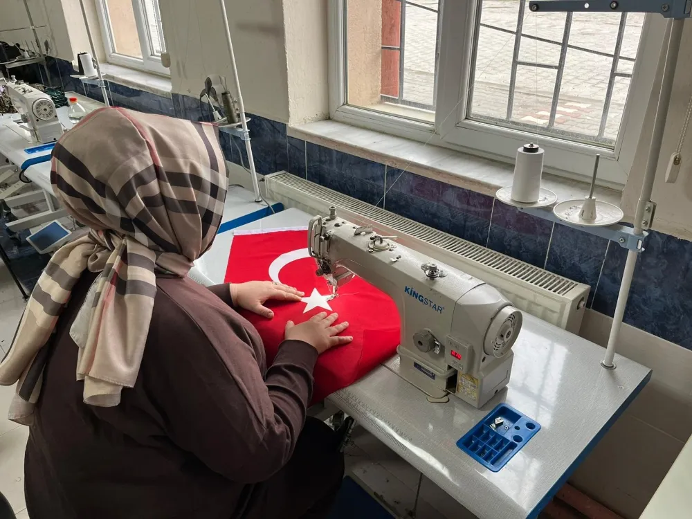 Halk Eğitimi Merkezi bünyesinde yürütülen el sanatları kursları kapsamında hazırlanan Türk bayrakları, yalnızca birer el işi ürünü olmanın ötesinde taşıdığı manevi değerle ön plana çıktı. Kursiyerler tarafından büyük bir titizlikle dikilen her bayrakta, bağımsızlık ruhu, vatan sevgisi ve aziz şehitlere duyulan minnet duygusu yansıtıldı. Hazırlanan çalışmalarda, her bir dikişte bağımsızlık ateşinin, her bir ilmekte ise bu vatan uğruna canlarını feda eden şehitlerin emaneti olduğu vurgulandı. Kursiyerler, ortaya koydukları eserlerle milli değerlere sahip çıkmanın yanı sıra bu değerleri gelecek nesillere aktarmanın gururunu yaşadı.