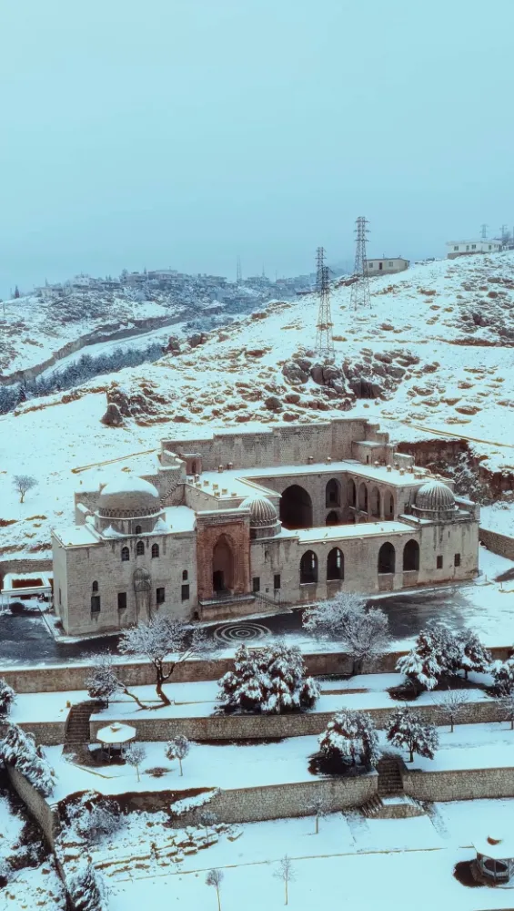 Asırlardır ilmin, sabrın ve hikmetin simgesi olan Kasımiye Medresesi, kar örtüsüyle birlikte manevi atmosferini daha da belirgin hale getirdi. Beyaz örtüyle kaplanan yapı, Mardin’in kültürel mirasını farklı bir güzellikle yansıttı.