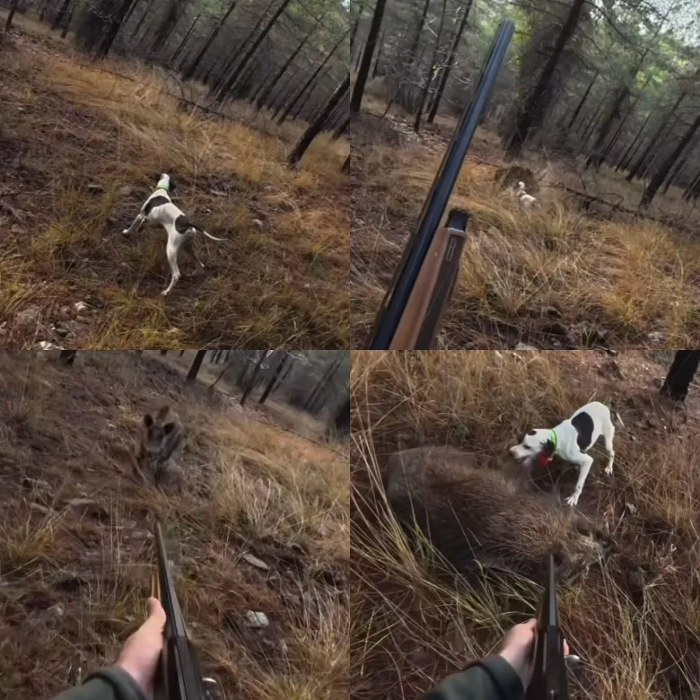 Avcı Öncüt'ün kask kamerasına yansıyan görüntülerde, köpeğin çalılık alanda ferma vermesi, hemen ardından yaban domuzunun aniden ortaya çıkarak koşması ve avcının panik içinde ateş açtığı anlar yer aldı.