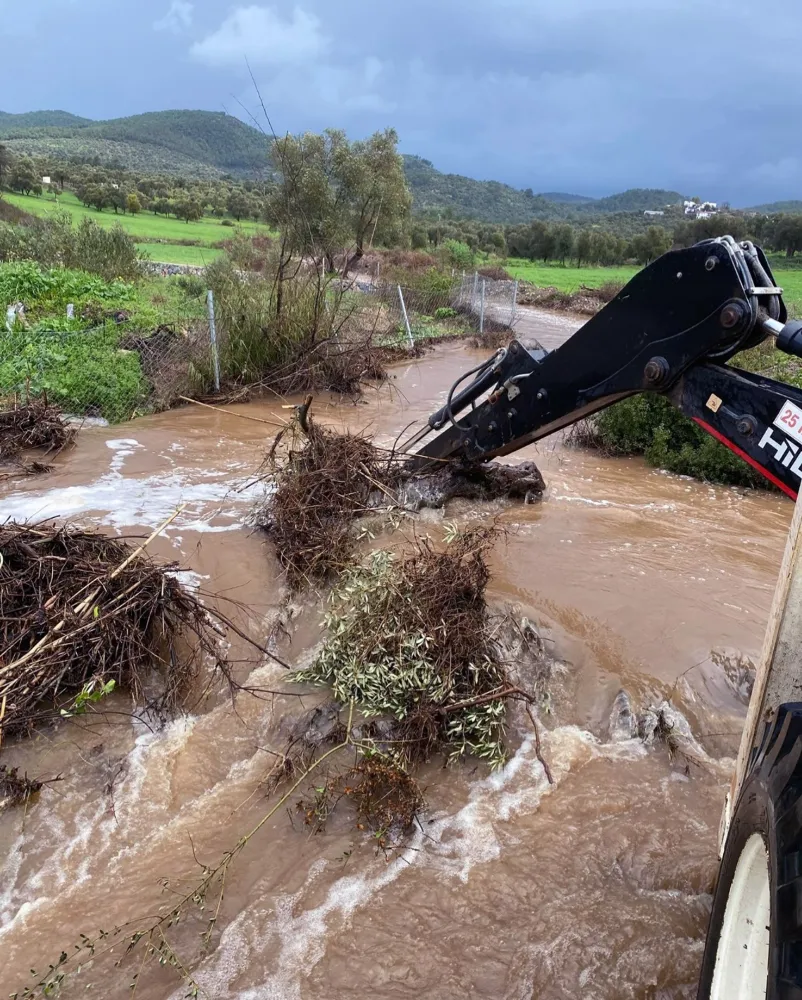 MUSKİ Genel Müdürlüğü çalışmalar ile ilgili yaptığı açıklamada, "İlimiz genelinde etkisini sürdüren yoğun yağışların vatandaşlarımızın günlük yaşamını olumsuz etkilememesi için ekiplerimizle birlikte sahada gece gündüz, 7 gün 24 saat esasına göre çalışmalarımızı aralıksız sürdürüyoruz. Bu kapsamda riskli bölgelerde yağmur suyu hatlarında temizlik ve tıkanıklık giderme çalışmaları gerçekleştiriyor; dere yatakları, mazgallar ve menfezlerde kontroller yaparak taşkın ve su baskını riski taşıyan noktalara anında müdahale ediyoruz. Su basan ev ve iş yerlerinde su tahliye çalışmalarını yürütüyor, logar kontrolleri ve mazgal kazılarıyla yağmur sularının sağlıklı şekilde tahliyesini sağlıyoruz. Muğla Büyükşehir Belediye Başkanımız Ahmet Aras’ın, yoğun yağışların vatandaşlarımıza mağduriyet yaşatmaması amacıyla verdiği hızlı ve etkili müdahale talimatları doğrultusunda sahadaki çalışmalarımıza devam ediyoruz. Acil durumlar için 185 ve 444 48 01 numaralı hatlardan bizlere ulaşabilirsiniz" denildi.