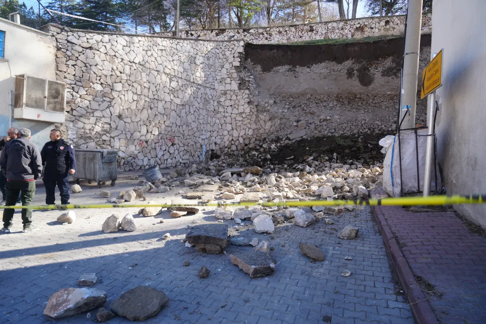 Niğde'de kale çevresinde araç trafiğinin de kullandığı yolda meydana gelen istinat duvarı çökmesi ucuz atlatıldı.