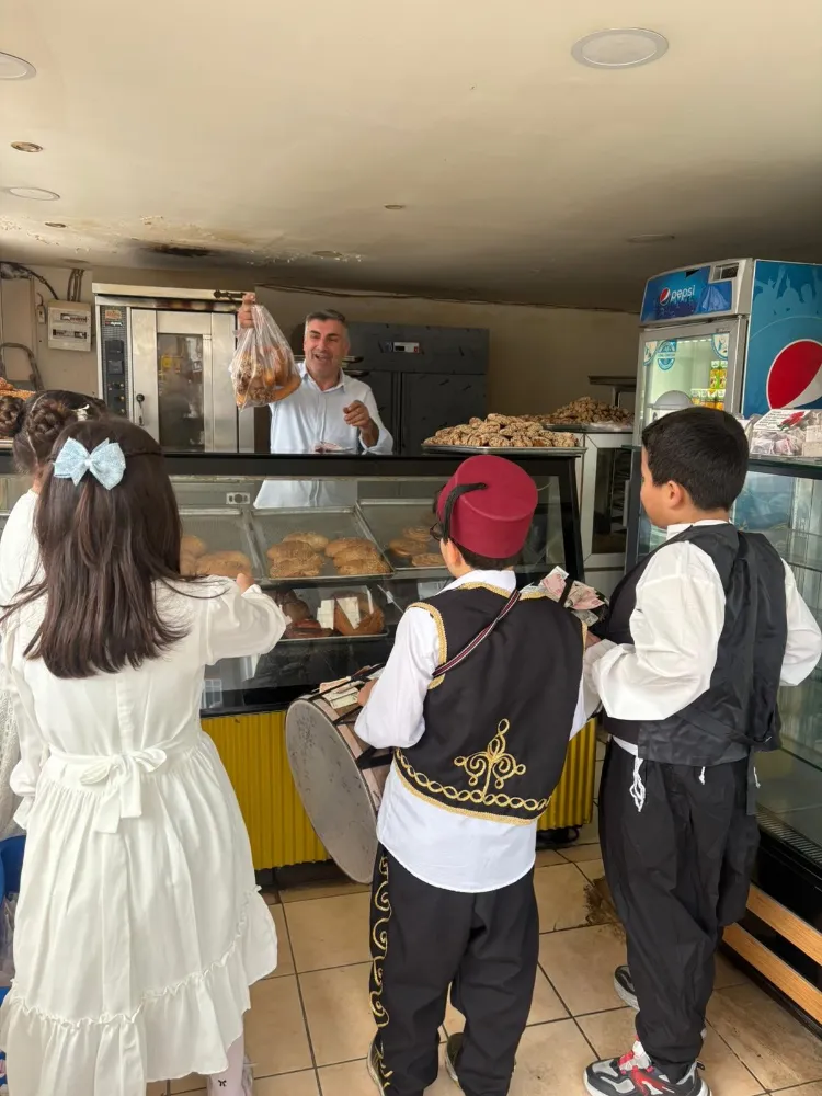 Osmaniye’de ilkokul öğrencileri, geleneksel kıyafetlerle Ramazan manileri okuyarak esnafı ziyaret etti. Gül lokumu dağıtan öğrencilerin topladığı bahşişlerle ihtiyaç sahibi öğrencilere bayramlık alınacağı belirtildi.
