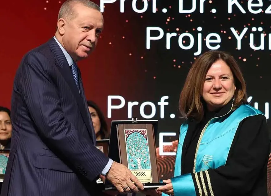 Ödülü rektör Prof. Dr. Yusuf Yılmaz ve Ziraat Fakültesi Bahçe Bitkileri Bölümü Öğretim Üyesi Prof. Dr. Keziban Yazıcı, Cumhurbaşkanının elinden aldı.