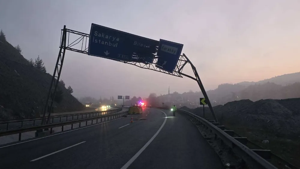 Bilecik’te Damperi Açılan Tır Trafik Levhasına Çarptı