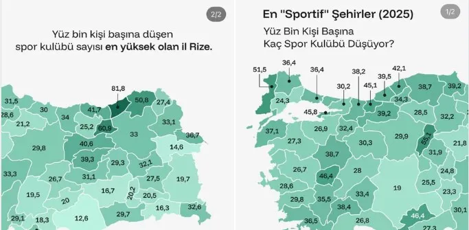 Türkiye ortalamasının 29,9 olduğu tabloda Rize’nin ulaştığı oran, kentin spor alanındaki gelişimini ortaya koydu.