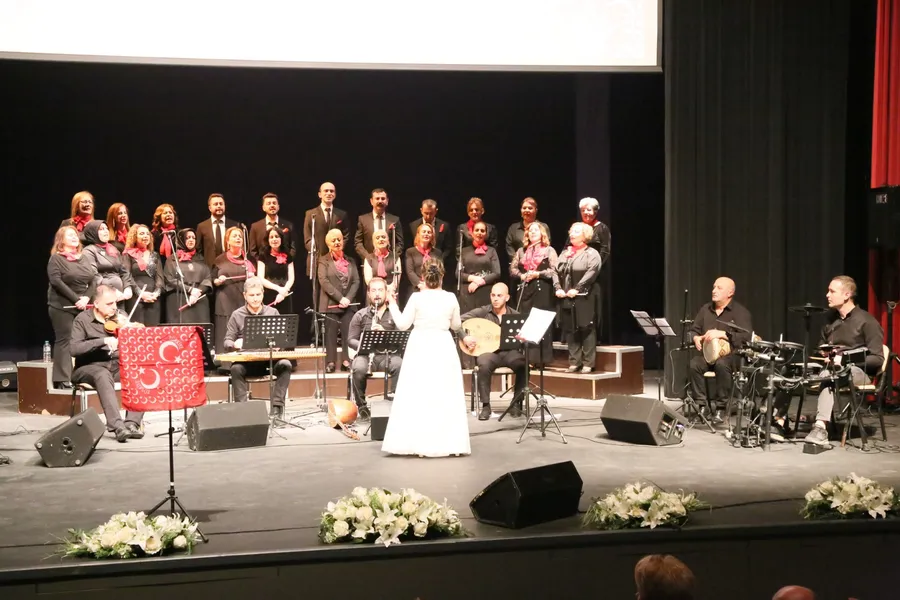 İsmail Kahraman Kültür Merkezinde yapılan konserde Şef Emine Özdemir Yılmaz yönetiminde sahne alan koristler, sanat müziği, halk müziği, yöresel müzikler ve Atatürk'ün sevdiği türkülerden ve Cumhuriyet marşlarından harmanladıkları eserleri seslendirdiler.