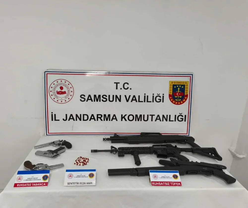 Samsun'un İlkadım ilçesinde jandarma ekiplerince düzenlenen operasyonda uyuşturucu hap ve ruhsatsız silahlar ele geçirilirken, 1 kişi hakkında adli işlem başlatıldı.
