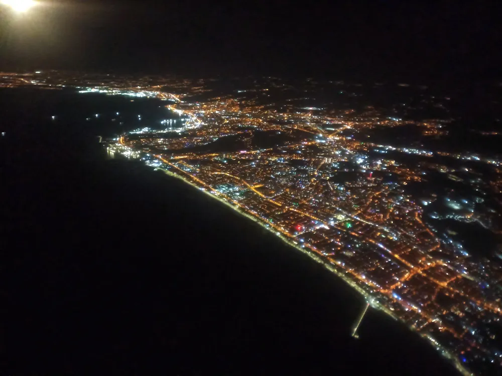Gece saatlerinde uçaktan kaydedilen fotoğraflarda ise Samsun’un sahil şeridi ve ana arterleri ışıklarla bezendi. Karadeniz kıyısı boyunca uzanan aydınlatmalar ve yoğun trafik akışı, kentin hareketli yapısını gözler önüne serdi.