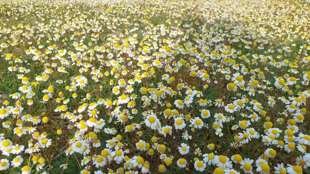 Manisa'nın Sarıgöl ilçesinde şubat ayında yağan bol yağışların ardından dağ yamaçlarında papatya ve çeşitli kır çiçekleri yoğun şekilde açtı. Doğadaki bu bolluk, arıcılıkla uğraşan üreticilerin yüzünü güldürdü.